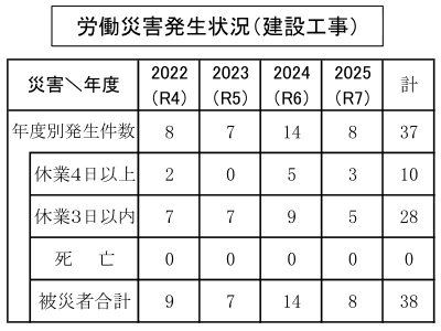 基本理念「安全・健康はすべてに優先する」のもと國場組コスモスを推進し、労働災害の絶滅、健康増進及び作業環境の形成をはかる
